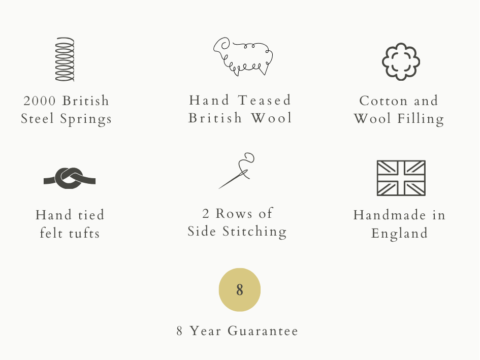 - 100% Natural fillings of blended cotton and British wool, hand teased loose sheep wool