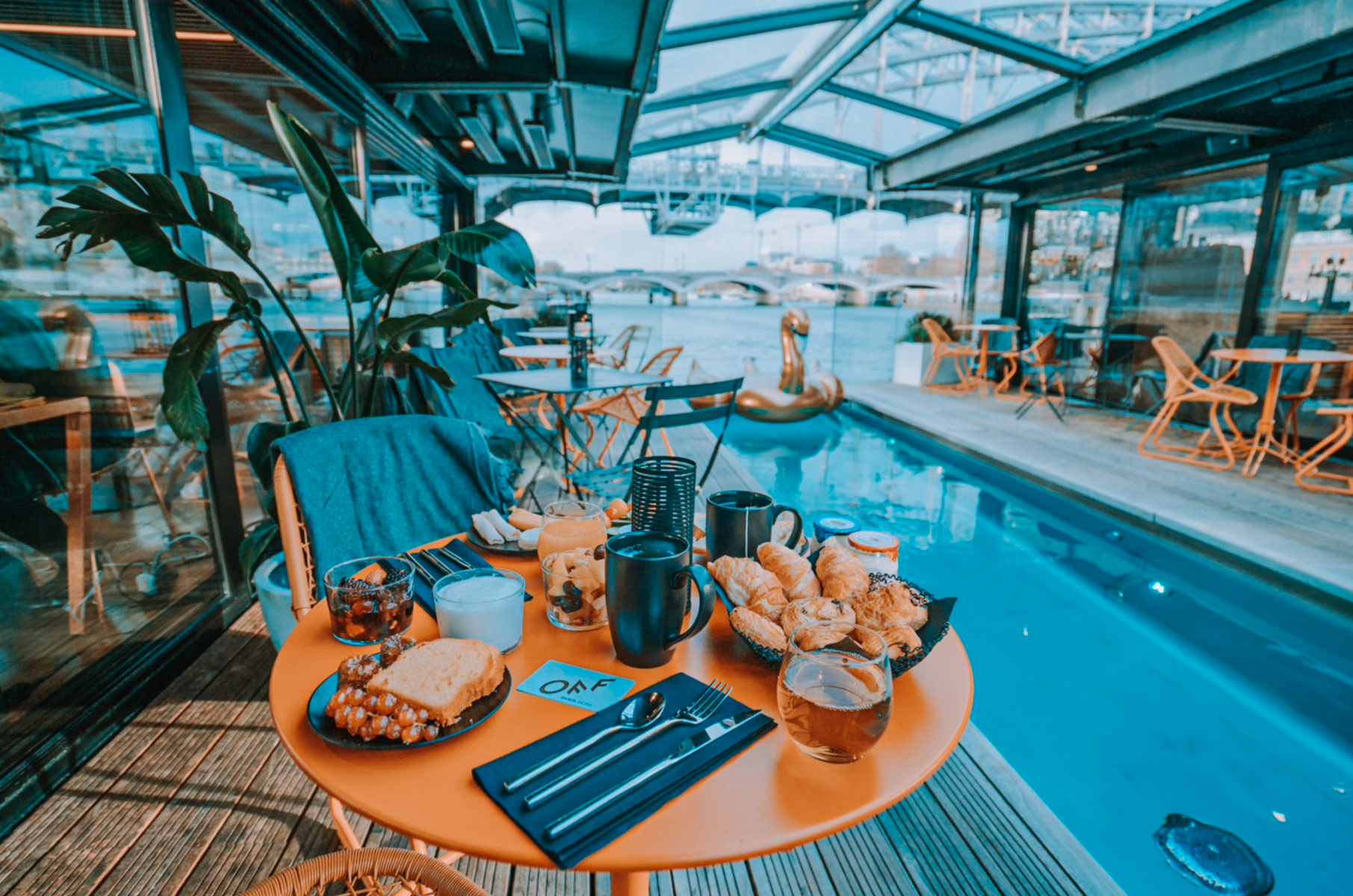 C'est officiel: Off Paris Seine, France’s first floating hotel, put down its gangplank just after the summer solstice. This buzzy new hangout is one place you wouldn’t mind being marooned in the case of, ahem, floods. Here you can sip a cocktail in the lounge, dip your feet in the small turquoise pool, while you watch a parade of river boats ply the waters.