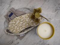 Interest Free Payment Options With Klarna - Learn MoreSnuggle up with our Cosy Nights Set, featuring an exclusive handmade Eye Mask and Hot Water Bottle Cover, warming No. 7 Hidcote Candle and 100% Linen Studio Pouch in Sage.